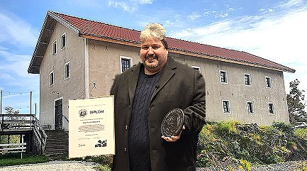 “Det är lite ironi att på den här platsen i den gamla sessionssalen för 21 år sedan togs beslut att förköpa mitt hus, hem, all min jord och skog och sommarstugan. Då ansågs jag vara ett hot mot magasinet. Nu står jag här och tar emot pris för renoveringen av magasinet som jag räddat från ett totalt förfall.”