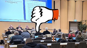 Ingenting i sak har hänt med motionen – inte förrän nu, den 19 februari 2026, då motionen behandlades på kommunfullmäktiges sammanträde. Motionen avslogs av de styrande partierna (S+C+KD+MP) tack vare ordförandes utslagsröst. Voteringen slutade 23-23.