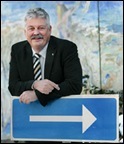 En annan skillnad är att de andra bloggarna skrivs av politiker. Kommundirektör Thörnkvist är inte politiker utan tjänsteman, dessutom kommunens högste tjänsteman. …även om det ser ut som att han tycks känna det väldigt bekvämt när han lutar sig mot den blå skylten med pilen som pekar åt höger…