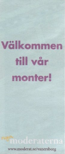 Som Niklas Claesson mycket riktigt påpekar i en kommentar till det förra blogginlägget, så missade jag totalt, och helt obegripligt, moderaternas annons i reklamtidningen för Aqua Blå. Annonsen finns precis bredvid Välfärdspartiets annons. Kanske missade jag den för att den var liten, kanske för att den var så blek…