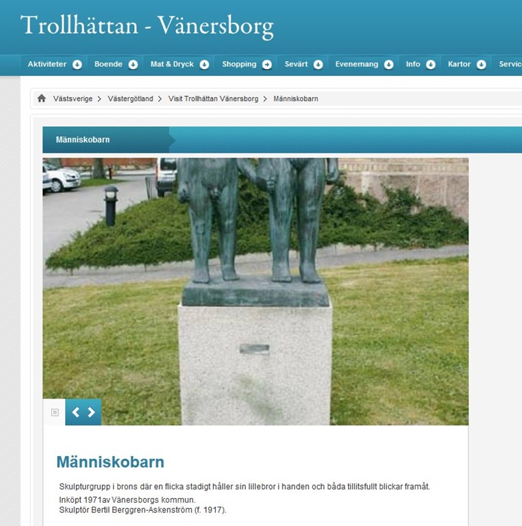 ”Människobarn” på Visit Trollhättan Vänersborgs hemsida, men den sidan gav inte direkt statyn rättvisa…