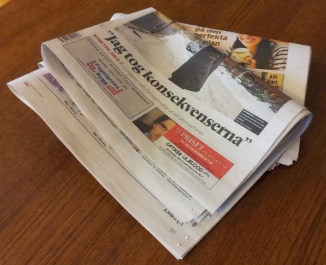 Dagen började med lite snöskottning och sedan var det dags att hämta tidningarna. När jag slängde upp TTELA på köksbordet, ungefär som Lars-Göran Ljunggren (S) sa i en radiointervju en gång i tiden att han skulle göra med arenahandlingarna, så ser jag rubriken på förstasidan: