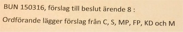 Bakom förslaget stod, helt plötsligt, och av någon outgrundlig anledning hela betongblocket, dvs centerpartiet, socialdemokraterna, miljöpartiet, folkpartiet, kristdemokraterna och moderaterna. Detta trots att de inte visade någon större samstämmighet i diskussionerna innan. Men de hittade väl varandra under lunchrasten… Och det över huvudet på oss vänsterpartister som faktiskt hade fört samtal i ett tidigare skede med S, C och MP… Typ 50 minuter innan… Men det kanske bara är intressant att prata med Vänsterpartiet när de vill ha våra röster… På sina förslag…