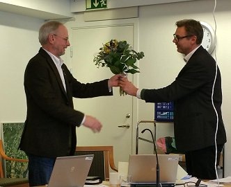 Sammanträdet var förvaltningschef Kent Javettes sista. Kent Javette har fått ett annat arbete och ska inte arbeta något mer för Vänersborgs kommun. Nu när han äntligen har flyttat till Vänersborgs kommun. Javette har nämligen blivit Vargöbo och allt! Kent avtackades på mötet med blommor och tårta.