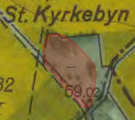 När Bo Carlsson slutligen förstörde återstoden av fornminnet, som enligt han själv inte fanns, såg det ut så här på området (kan fortfarande ses i Google Maps):
