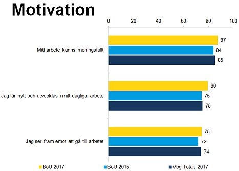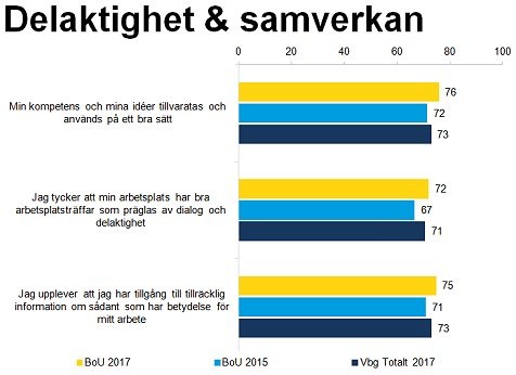 Enkäten besvarades av 856 anställda i BoU. Det var 83% av alla medarbetare.