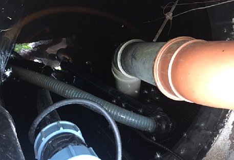 ”I den första versionen av system Two skulle ett pumphaveri innebära att orenat spillvatten kan ledas ut på källargolvet. Det kommer pga lukt att upptäckas snabbt. … Det leds dock inte direkt ut i gränsdiket utan ska först passera en tvåkammarbrunn i trädgården, därefter ett 35 m långt meanderformat dike, därefter spädas ut i vår stora trädgårdsdamm innan det utspätt kan nå gränsdiket. Med högsta sannolikhet är