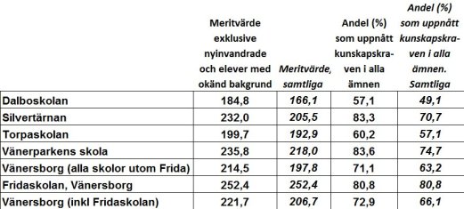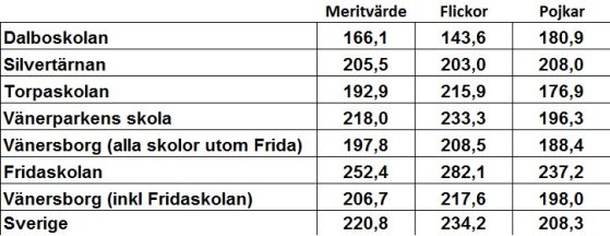 Så här ser meritvärdet ut för årets 9:or i Vänersborgs skolor: