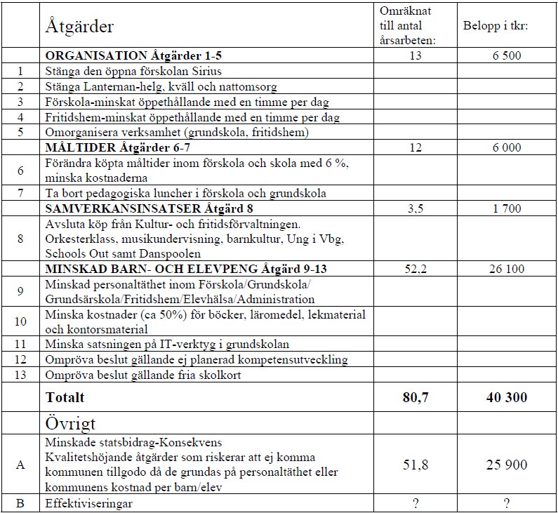 Åtgärder för att spara 40 milj kr innebär att nämnden måste spara ytterligare 26 miljoner… 40 miljoner kr motsvarar 80,7 årsarbeten…