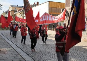 I demonstrationståget syntes som vanligt många av de socialdemokratiska profilerna i Vänersborg. Benny Augustsson, Elisabeth Bohlin, Reidar Eriksson, Madelaine Karlsson, Dan Nyberg, Amanda Blomster Roos, Jonathan Svensson, Christin Slättmyr, Nils-Erik Söderqvist och flera andra toppnamn marscherade under de röda fanorna. Och det var inte det lättaste. Demonstrationen avverkade nämligen en tämligen lång sträcka runt gatorna i centrum. Under de ca 35 minuter som demonstrationen pågick svettades även några av de yngre demonstranterna ymnigt…
