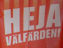 Som vanligt var jag ganska nyfiken på vad socialdemokraterna i Vänersborg skulle demonstrera för, men det var dels tunt med plakat och banderoller i tåget och dels var det inga som handlade specifikt om Vänersborg. Den banderoll som dominerade tåget hade parollen ”Heja välfärden!”. Jag kan inte påstå att jag vet vad det konkret betyder, men jag har svårt att tro att det handlar om neddragningar av utbildning och social service. Som är på gång i Vänersborg…