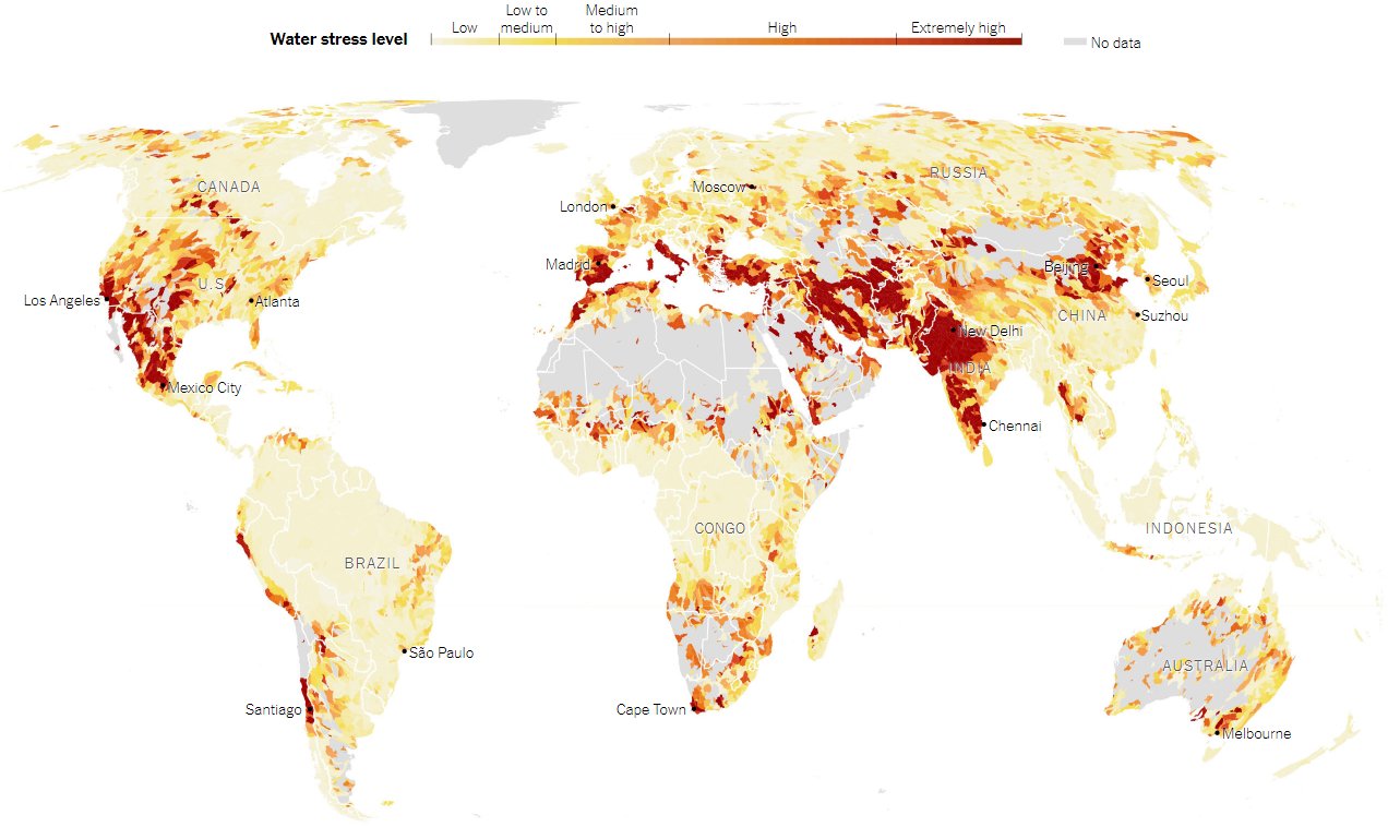 “From India to Iran to Botswana, 17 countries around the world are currently under extremely high water stress, meaning they are using almost all the water they have.”