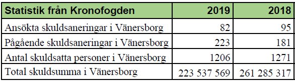 “Av de som är skuldsatta hos Kronofogden i kommunen är det 823 barn som lever i hushåll med skulder och/eller skuldsanering vilket motsvarar 9,7% av alla barn i Vänersborgs kommun. Dessa barn lever med existensminimum där det inte finns ekonomiskt utrymme för fritidsaktiviteter och nöjen.”