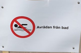 Doppet visade sig emellertid bli det sista doppet under veckan. När jag kom upp ur vattnet vid badtrappan inte långt från Fridastatyn, så mötte jag nämligen en fd lärarkollega med sitt barnbarn. Hon undrade var man kunde bada. Jag var lite frågande, men det visade sig att ett plakat nyligen hade satts upp vid barnbadet vid Norra skolan: