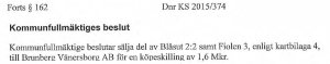 Reservation – Förlikningsavtal fastigheten Fiolen 9 (som är det som tidigare hette Fiolen 3)