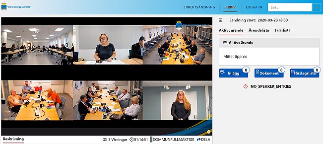 Det var en historisk dag för Vänersborgs kommunfullmäktige. Det var alltså det första sammanträdet någonsin som sändes direkt på webben. Det var ett resultat av en vänsterpartistisk motion, ja… – egentligen kanske två. (Se gårdagens blogg “Kretsloppsparken mm“.) Nu är det tänkt att alla sammanträden ska direktsändas i fortsättningen. Vi får se hur det kommer att gå, det kanske blir svårare den dag då det blir riktiga fysiska sammanträden igen. För då lär det behövas fler mikrofoner och kameror, personal bakom dom etc.