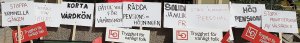 Som vanligt var jag ganska nyfiken på vad socialdemokraterna i Vänersborg skulle framföra för lokala krav och paroller, men det var dels tunt med plakat och banderoller i tåget i allmänhet och dels var det inga som handlade specifikt om Vänersborg.