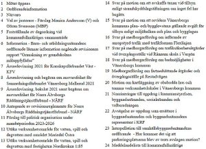 Det blir sannolikt ingen diskussion på sammanträdet förrän ordförande Annalena Levin (C) kommer till ärende 11 på dagordningen, “Förslag till politisk organisation under mandatperioden 2023-2026”.