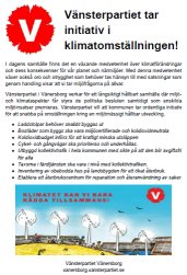 Rubriken på flygbladet är ”Vänsterpartiet tar initiativ i klimatomställningen!”.