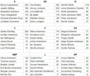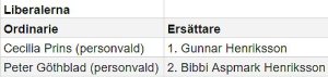 I Liberalerna ställde personrösterna till det. Valsedelns två första namn blev “nerputtade” till 3:e respektive 4:e plats. Kommande mandatperiod ska L därför representeras av Cecilia Prins och Peter Göthblad som med sina personröster tar plats bland de 51 i fullmäktige.