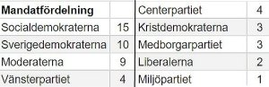 Så här många mandat fick varje parti nästa mandatperiod, dvs platser i kommunfullmäktige.