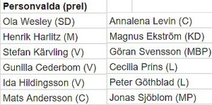 Det är bara två namn som utgör undantag, dels mitt eget (Stefan Kärvling alltså) och dels Cecilia Prins från Liberalerna. Jag stod på plats 2 och Prins på plats 4. Vi har båda placerat oss på respektive partis första plats.