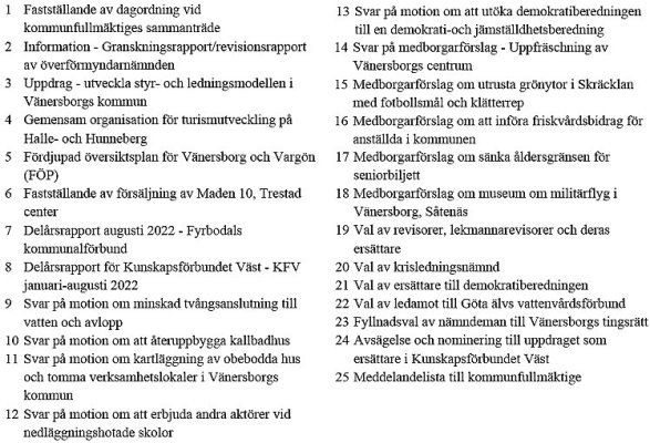 > Kommunfullmäktige 15 feb (1/2) > DagordningKF15feb2023