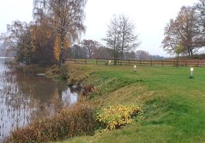 älven har nämligen tuggat i sig stora delar av grannens jordbruksfastighet. Det har i varje fall tidigare gått en remsa på 15-30 meters bredd till fiskhuset. Fiskhuset står tveklöst på grannens fastighet. (Ärendehandläggaren på Länsstyrelsens naturavdelning har i sin iver anmält fiskhuset