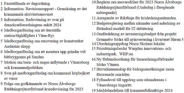 Onsdagskvällens dagordning har följande utseende: