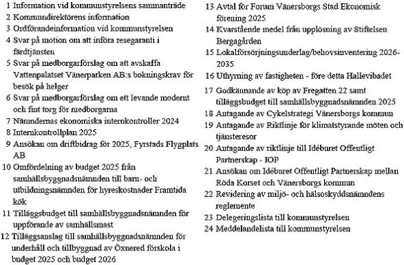 > KS: Från Hallevibadet och flygplatsen till Forum Vänersborg och Röda Korset > DagordningKS29jan2025