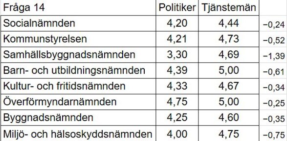 > Politiker och tjänstemän 10: Enkät (2/2) > Enkatnamnd202425_fraga14
