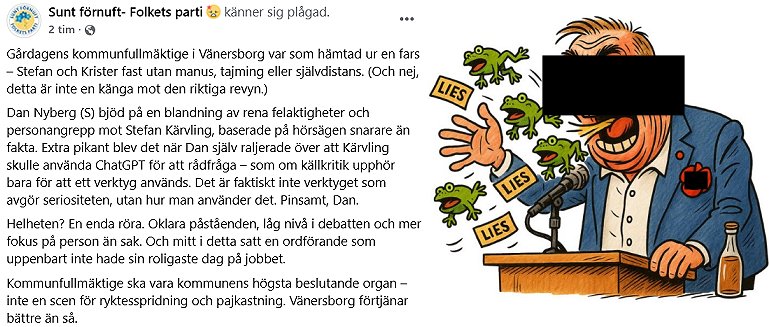 Sunt Förnuft, det nybildade kommunala partiet, följde debatten på kommunens webb-TV. (Det går att titta och lyssna på hela debatten i efterhand – klicka här.) Partiet skrev så här på Facebook tidigare idag: