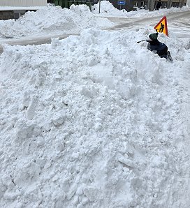 Nu är det några dagar utan mer snö. Skulle man då inte kunna passa på att köra bort en del snö innan nästa snöfall? Det kommer att bli svårt att få undan all ny snö som enligt prognoserna är på gång.
