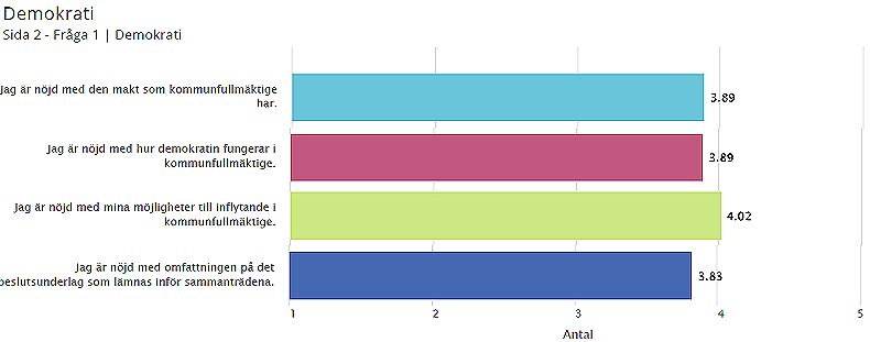 - Jag är nöjd med hur demokratin fungerar i kommunfullmäktige – 3,89