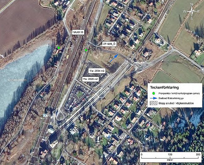 ”2) I Öxnered är dataunderlaget inte entydigt; i punkten VAAB 35 (nära utlopp till recipient) noteras verklig, uppmätt medelhalt i samma storleksordning som den teoretiska medelhalten medan det i punkten VAAB 34 (närmare den utförda parkeringsplatsen) noteras halter i storleksordningen 6-7 ggr den teoretiska medelhalten.”