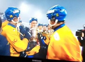 Bertilssons andra triumf var att Sverige vann VM-finalen över Ryssland med 5-4 och kan således titulera sig som världsmästare. (Sverige alltså, inte Bertilsson.) Det skedde på Almatys multiarena, Almaty Central Stadium. Almaty har som alla förstår också en multiarena, dock inte så fin som Vänersborgs. Almatys arena är också mer primitiv. Den har inget tak, utan man får spela utomhus… Sverige kommer alltså till Arena Vänersborg som världsmästare. Wow!
