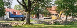 grävdes och lades ledningar på området. Jag fick senare höra att det installerades en ny värmeanläggning, där restprodukten blir klimatvänlig biokol (för mer information klicka här). Och bland alla nyrenoverade byggnader syntes elever som just hade börjat höstterminen… Medan korna stillsamt betade på ängarna runt omkring.