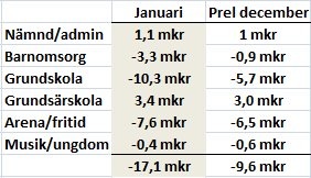 Barn- och Ungdomsnämnden gjorde alltså ett stort underskott förra året, 17,1 miljoner kronor. I handlingarna förklaras underskottet, och kanske främst skillnaderna mellan prognosen i december och det faktiska utfallet.