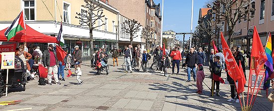 och ett mycket engagerat och uppskattat tal av Mikaela DelValle från Ung Vänster. Kamal el Salim talade om Gaza och bombningarna, medan Annica Haglund tog upp de hemlösas situation i Vänersborg. (Se “V firar 1 maj på gågatekrysset”.)