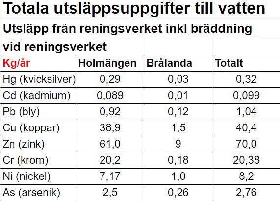 Varje år publicerar Kretslopp & Vatten miljörapporter över VA-verksamheterna. Det är en rapport från Holmängens avloppsreningsverk och en från Brålandas. De senaste rapporterna beskriver och analyserar år 2022. Jag har läst igenom rapporterna.