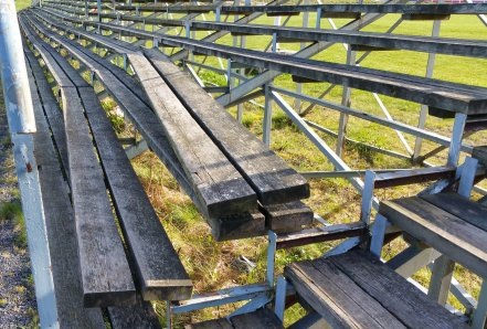 Läktaren är en katastrof, efter att någon har varit där och saboterat under vintern. Nu ligger brädor lösa och det ser ut som att det finns risk att någon faktiskt kan skada sig. Och då är ju också frågan vems ansvar det är – rugbyklubbens eller kommunens.