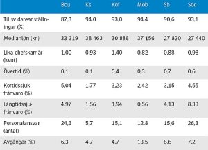 “Nyckeltal som ligger högt i poäng är andelen tillsvidareanställda, lika chefskarriär och andel övertid.