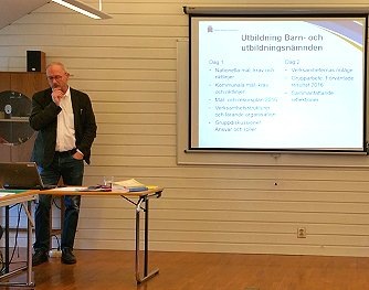 Förvaltningschef Kent Javette höll i taktpinnen när BUN:s nya och gamla ledamöter drillades i lagar, förordningar och styrdokument för förskola och grundskola, allt på Rågårdsviks pensionat bland de bohuslänska klipporna.