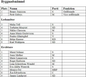 De flesta kommuninvånare, i varje fall de jag stöter på, tycks allra mest intresserade av det sistnämnda – vilka personer ska sitta i den och den nämnden. Och det är tydligen en särskild nämnd som tilldrar sig mest uppmärksamhet. Senast idag fick jag på kommunens “Frukostforum” vid två tillfällen frågan – vilka ska sitta i byggnadsnämnden…?