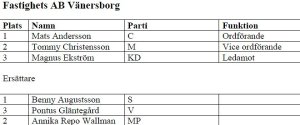 Igår skrev jag om vilka som skulle sitta i Barn- och Utbildningsnämnden de kommande fyra åren. (Se här.) Och idag ”avslöjade” TTELA vilka från minialliansen som skulle bli vice ordförande respektive 1:e vice ordförande i de olika nämnderna och styrelserna. Minialliansen är ju den största oppositionsgruppen, eller vad man nu ska kalla moderaterna, folkpartiet och kristdemokraterna, och det är oppositionen som av tradition innehar dessa poster i Vänersborg.