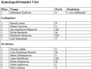 Det här är också två överraskningar. Ingen av dem satt i den förra Kulturnämnden. Marika Isetorp är ju aktiv inom teaterns värld, men å andra sidan så har hon ju visat en stark ”antipati” mot arenan. Och nu faller arenan på hennes lott. Det ska bli intressant och spännande att se om Isetorp kan göra något åt alla de kostnader som arenan sväljer – och öka arenans inkomster. Henrik Josten har ”sadlat om”. Han har tidigare varit aktiv i gymnasienämnden, där han var ordförande, och sedan i Kunskapsförbundet Väst.