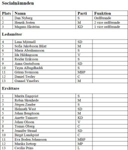 Lennart Niklasson var given som ordförande. Marie-Louise Bäckman var en liten överraskning, men när det blev klart att Tove af Geijerstam ”bytte” nämnd, så var det mer naturligt. Bäckman har suttit i socialnämnden tidigare. Liksom Annbritt Fröjd.