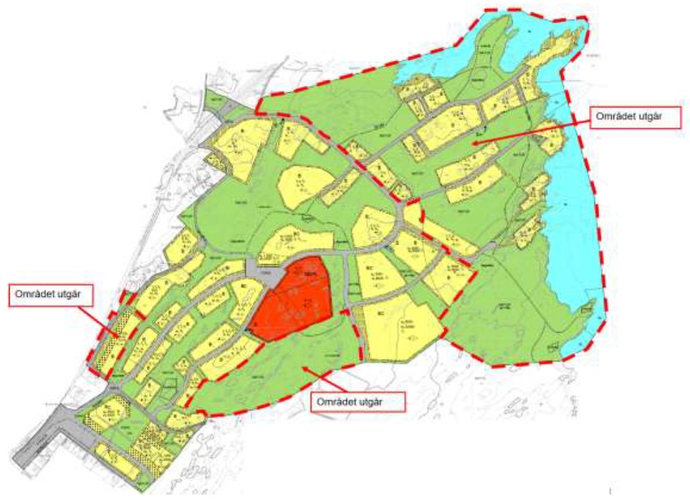 Detaljplanen var utställd för samråd under sommaren 2017 och för granskning under våren 2018. Sedan omarbetades planförslaget efter granskningen i sådan utsträckning att en förnyad granskning genomfördes vid årsskiftet 2018/2019. Förslaget reviderades något också efter denna granskning. Planområdet har t ex minskats ner från det ursprungliga förslaget (framför allt på grund av Länsstyrelsens inställning till strandskyddet) och planen ser nu ut så här: