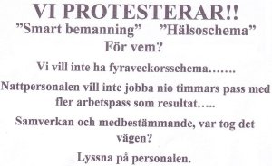 Socialförvaltningen i Vänersborgs kommun har som bekant beslutat att införa ”smart bemanning”. ”Smart bemanning” är ett nytt arbetssätt vad gäller bemanningsplanering och schemaläggning. (Se ”Smart bemanning?” och ”Tankar om ”Smart bemanning””.) Fackförbundet Kommunal har varit positiv till förändringen, men de ”vanliga” medlemmarna, dvs vårdpersonalen, protesterar.