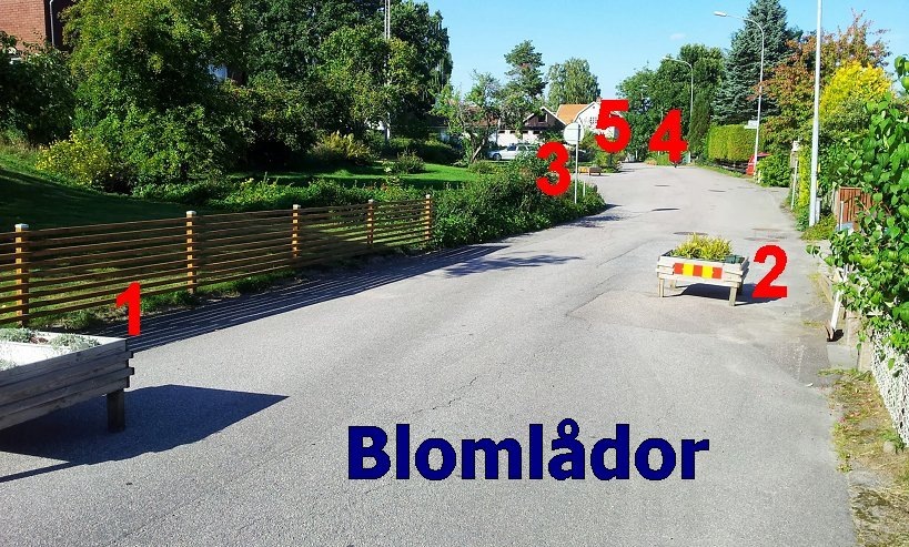 Men det är inte alltid så lätt för fastighetsägare och småbarnsföräldrar att få kommunens representanter att lyssna på nödvändigheten av att sätta upp farthinder. På en av bilderna ovan, så har blomlådorna tagits bort. Kommunen fick nämligen klagomål på att bilister hade stört sig på dem. Samhällsbyggnadsförvaltningen skriver: